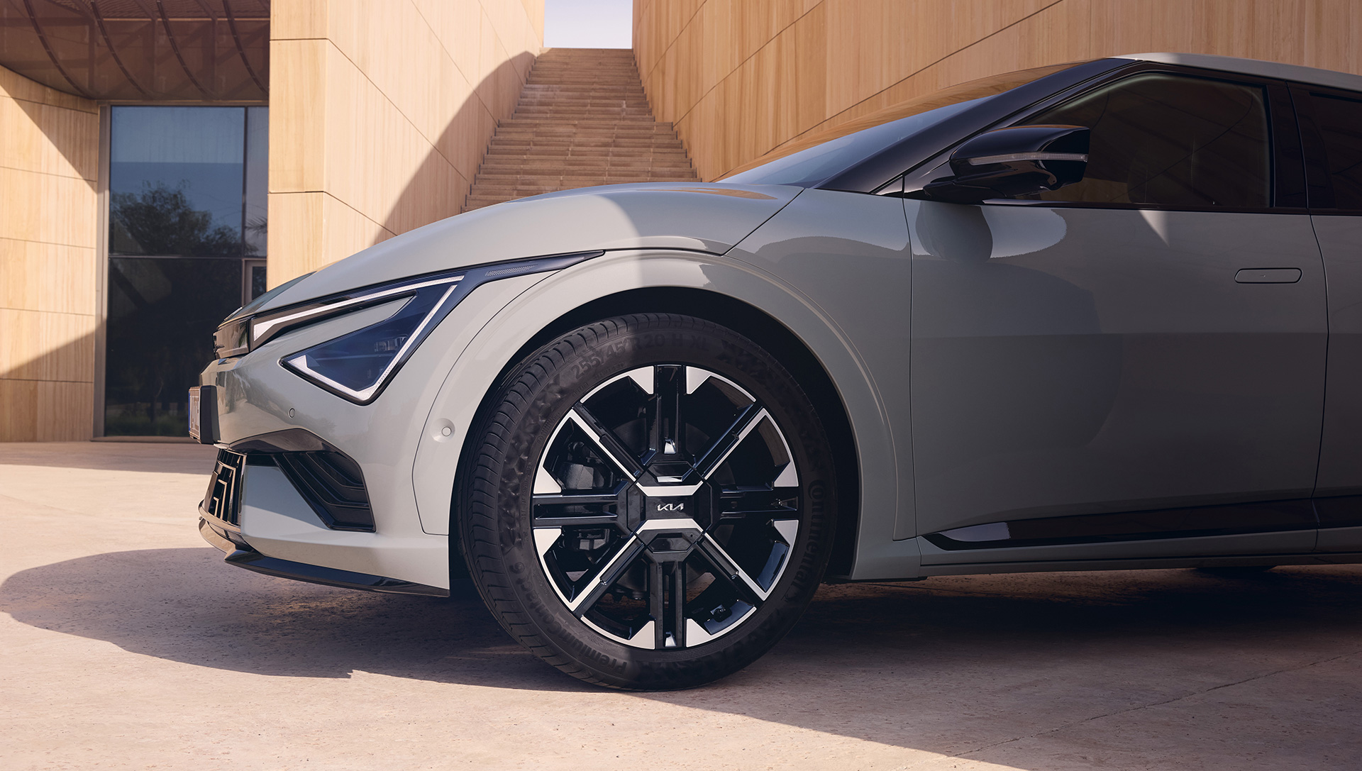 Die Leichtmetallfelgen in modernem Design, erhältlich in 19 und 20 Zoll, hinterlassen einen dynamischen Eindruck und geben dem Kia EV6 eine athletische Ausstrahlung, die perfekt zu seinem Charakter passt.
